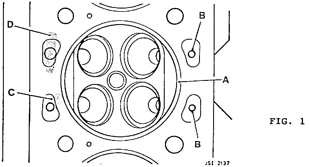 If the erosion extends to the combustion chamber fire ring (Fig. 1A & C), the cylinder head must be resurfaced to the following specifications: