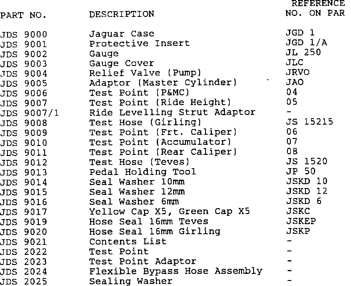 The Power Hydraulic Diagnostic Kit (JAG 1509) is no longer available in kit form. However, the following components which comprised JAG 1509 are available individually through Zone Parts Departments: