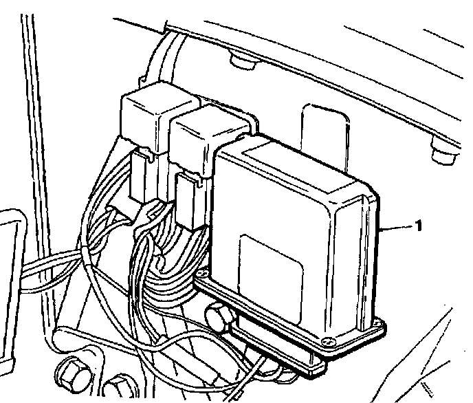 Lift the interface unit from its bracket (1) and disconnect the cable harness block connector.