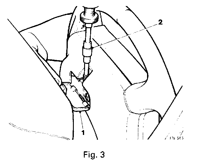 Open the arm screw cover (1 Fig. 3). Using the service tool JD 159 in conjunction with the screwdriver 18G 861 (2 Fig. 3), unscrew the arming screw (anti-clockwise) until it reaches a stop (12 turns, approximately 15 mm total movement).