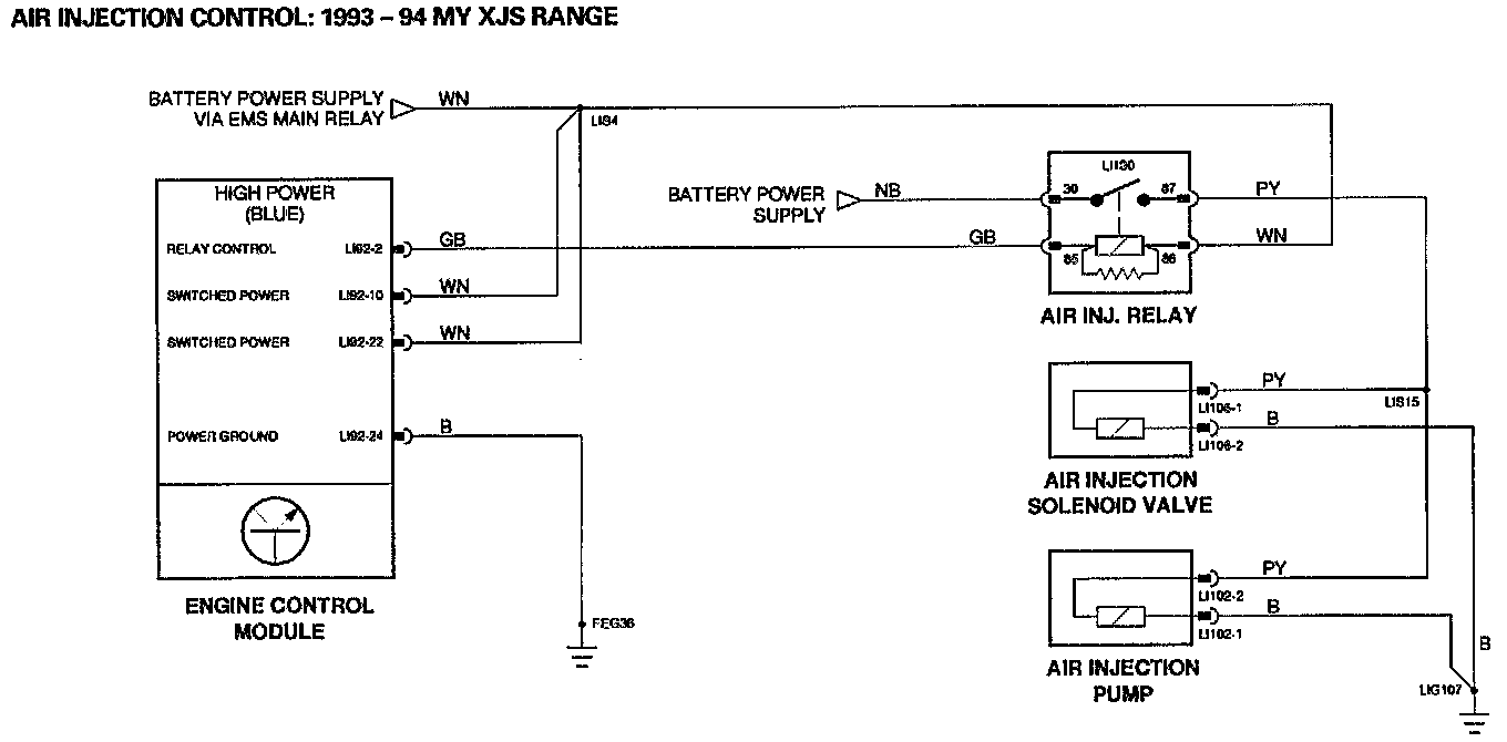 - Short circuit or open circuit in ignition switched power supply to the air injection relay pin 86.