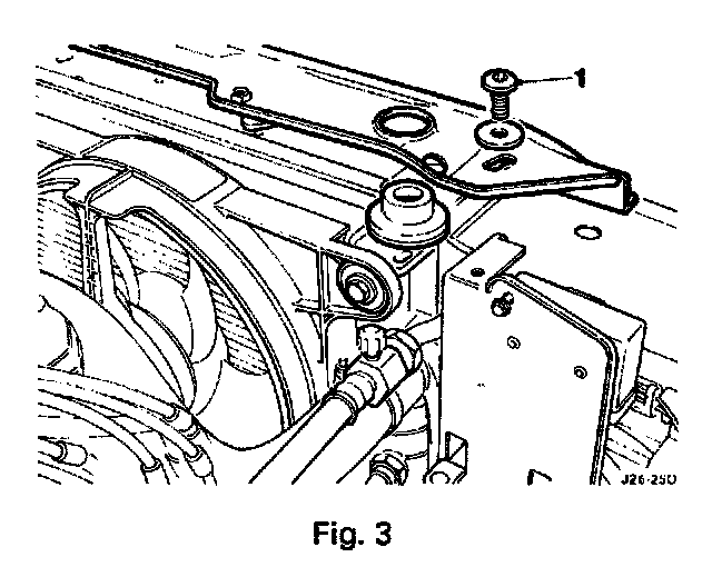 - Remove the top panel securing washers and seven screws (1 Fig. 3), remove the top panel and lift out the radiator assembly (Fig. 4).