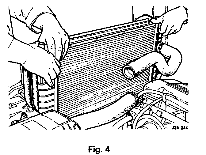 - Lower the new radiator (Fig. 4) into position, and refit the top panel. Secure with the washers and seven screws (1 Fig. 3).