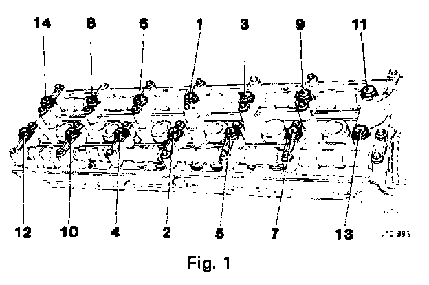 - Tighten the cylinder head bolts with reference to the sequence shown in Fig. 1.