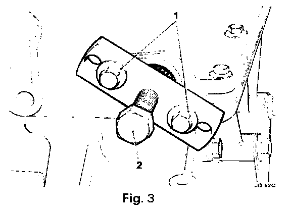 - Fit and tighten the tool securing bolts (1 Fig. 3).