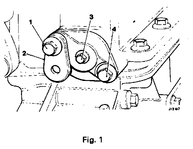 - Fit the tab washers (1 Fig. 4), Fit and tighten the securing bolts (2 Fig. 4). Lock over the tabs.