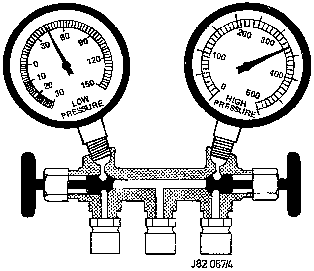 1. Discharge the system, until a stream of bubbles appear in the sight glass and both gauge readings drop to below normal.