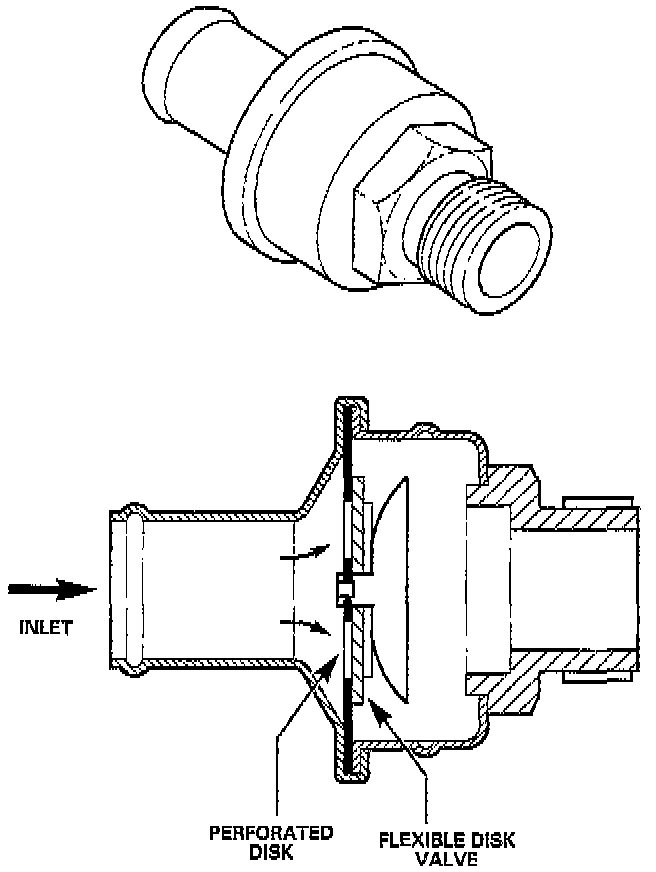 The check valve, located in the delivery tube behind the air pump, prevents the back-flow of exhaust gas to the air pump.
