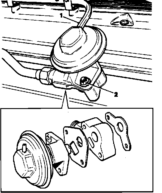 1. Disconnect vacuum hose (1) at EGR valve.