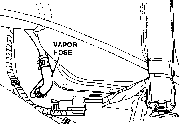24. Remove hose from evaporative loss flange and filler neck. Bend weld tag upward to release hose.