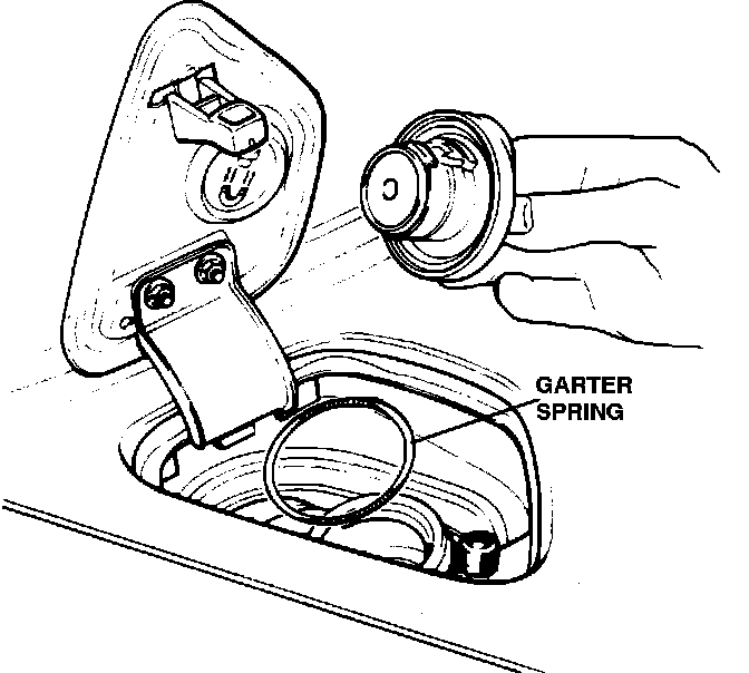 20. Open fuel filler cap and remove filler neck garter spring.