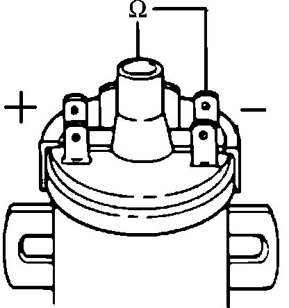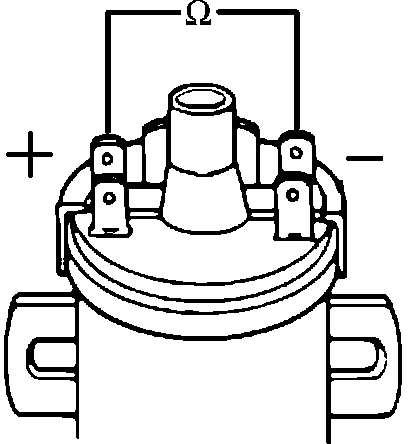 6. Connect the ohmmeter between (-) terminal and (center). Reading should be: