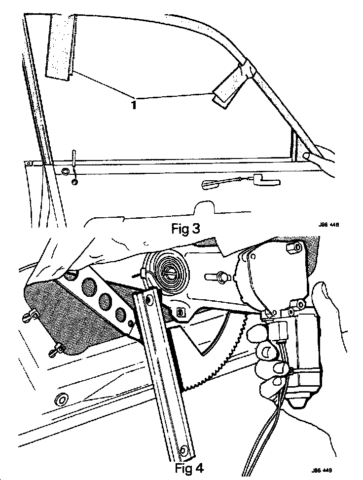 - Fit tape over the door glass and frame to secure the glass (Fig 3).