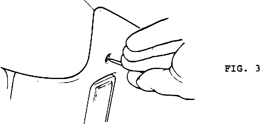 ^ Mark the position of the hole on the body inner quarter panel. Make sure the mark lines up with the hole in the trim pad, (Fig. 3)