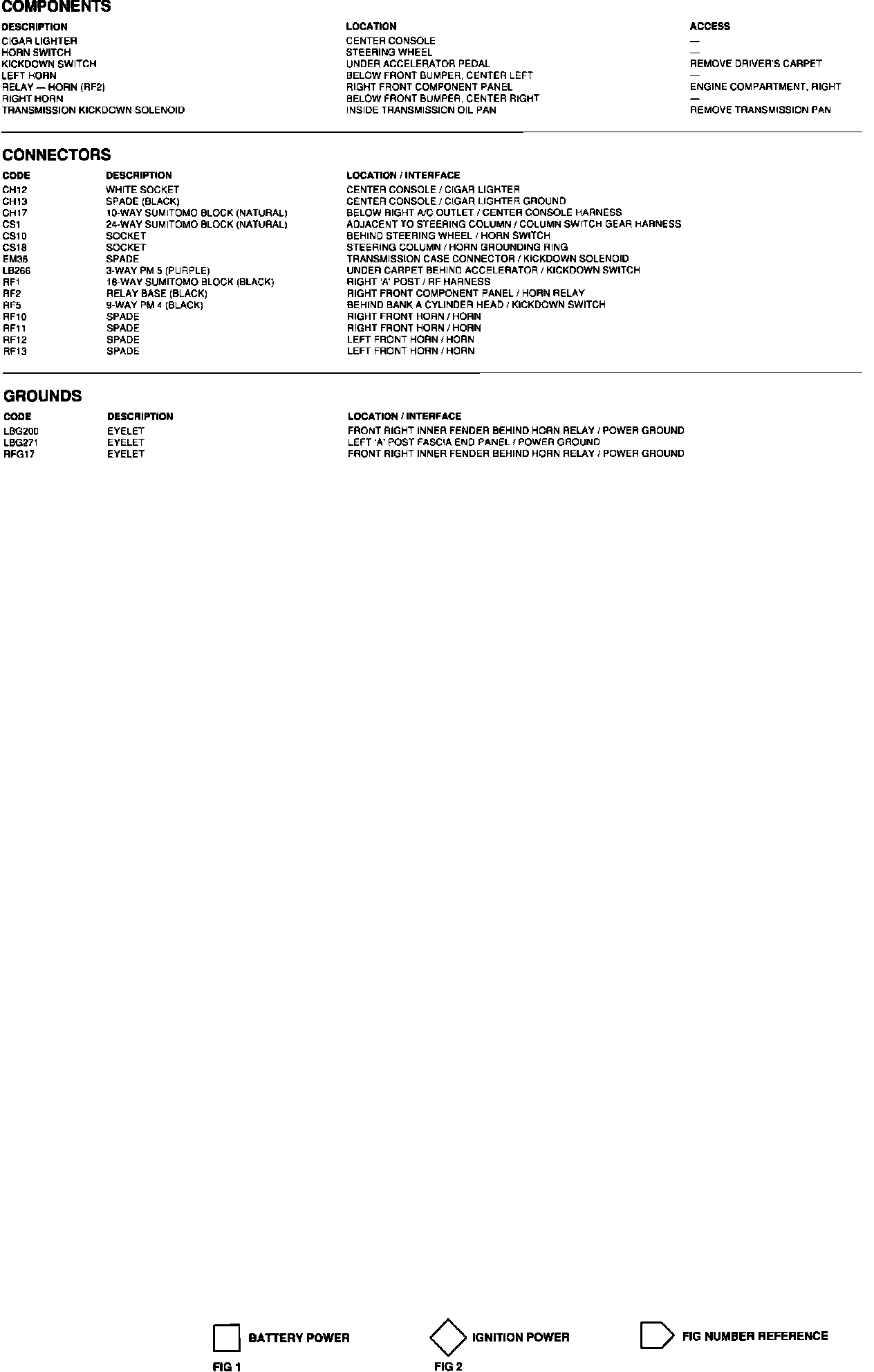 Horns, Cigar Lighter, Transmission Kickdown: