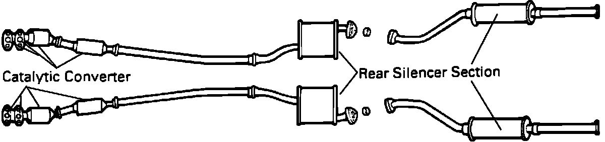 The 5.3L engine utilizes ceramic monolith converters fitted in the exhaust system to reduce carbon monoxide (CO), oxides of nitrogen (NOx) and hydrocarbon (HC) emissions. Downpipe converters are below exhaust manifolds on each cylinder bank and an additional pair (secondary) are immediately behind the downpipe converters. Platinum and rhodium are commonly used as catalysts to stimulate reactions which reduce exhaust gases to carbon dioxide and water vapor.