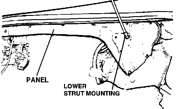 13. Use suitable prop to support trunk lid. Remove both lower gas strut mountings.