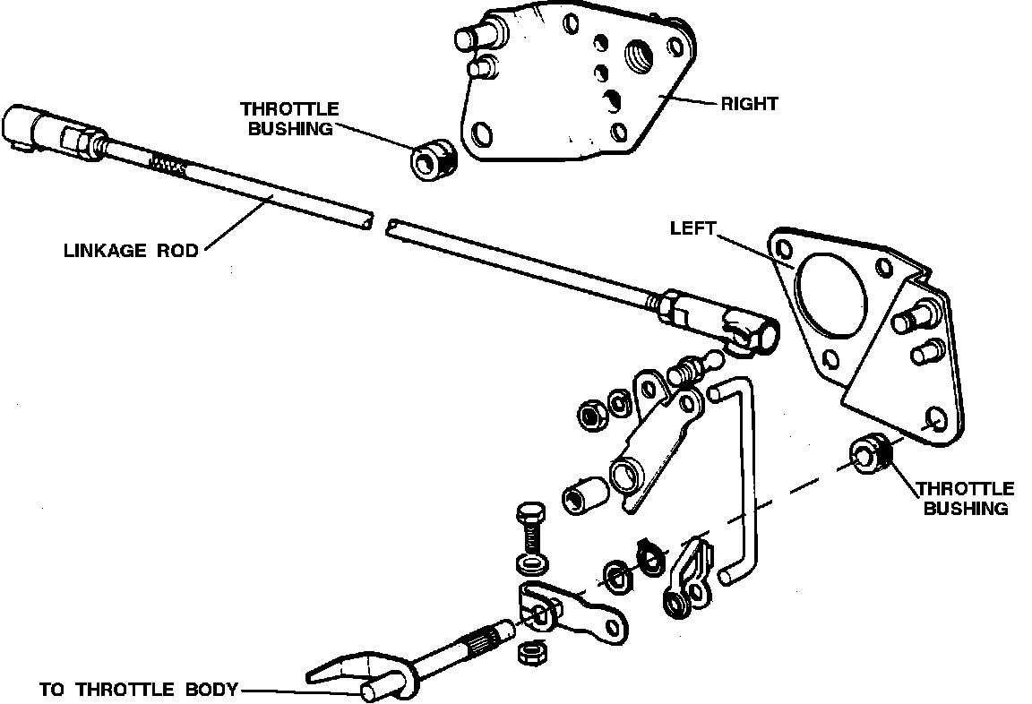 NOTE: Bushings are quite often broken. This can cause improper relationship between throttle potentiometer and throttle butterflies. If throttle bushings are replaced, be sure to check linkage adjustment.
