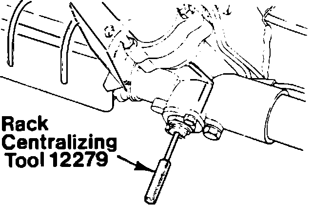 1. With tires inflated properly and wheels in straight-ahead position, remove the access plug from steering rack adjuster nut and insert rack centralizing tool No. 12279 or equivalent, Fig. 1.