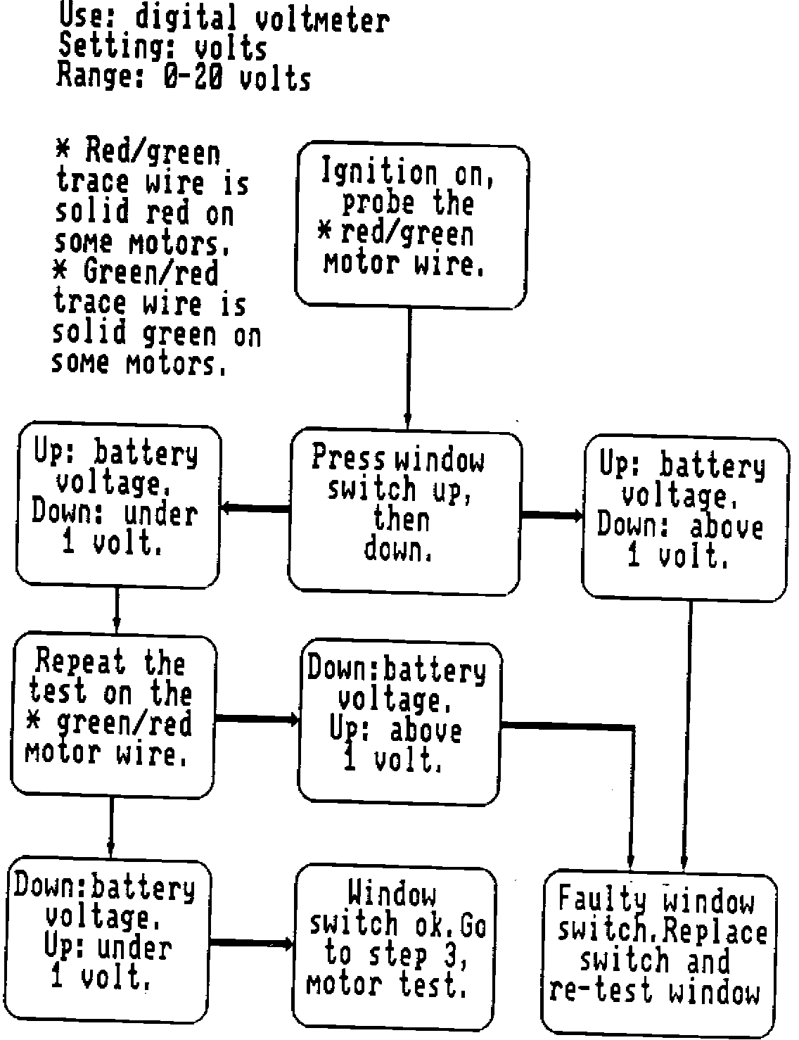 Diagnostic and repair procedure for window lift motors, switches and regulator assemblies.