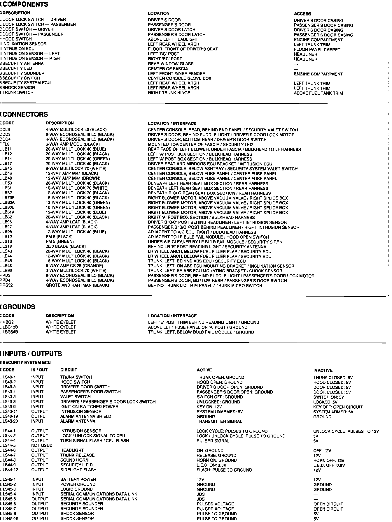 Components, connectors, grounds, inputs/outputs