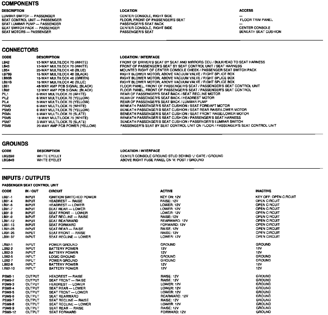 Components, connectors, grounds, inputs/outputs