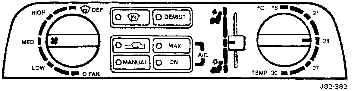 The TEMPERATURE ROTARY CONTROL is used to preset the in car heat level in either "automatic or manual" mode. There are two temperature sensors located in the system, exterior ambient, and in-car sensors.