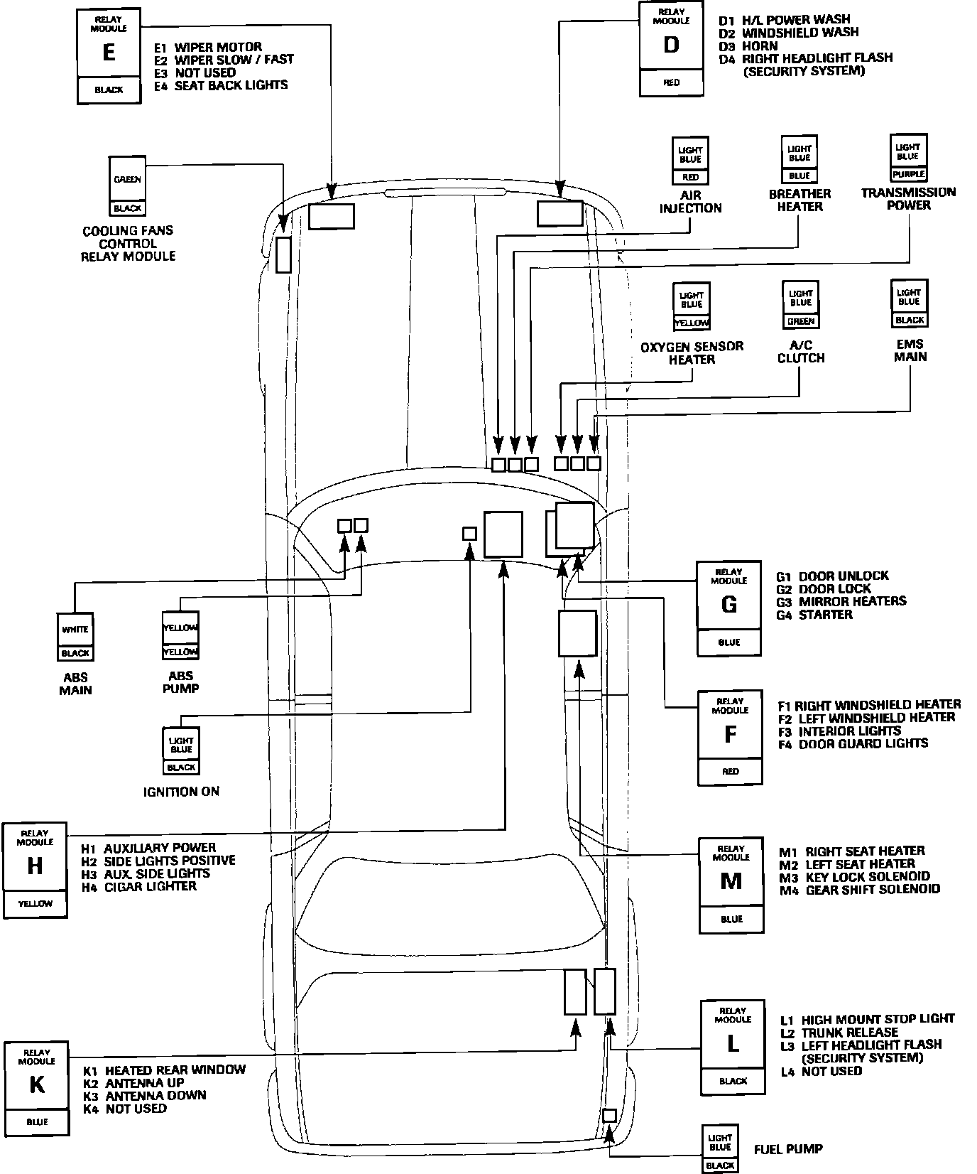 PURPOSEThe main relay supplies power to the supplementary air valve, air mass meter, fuel injectors and fuel pump relay.