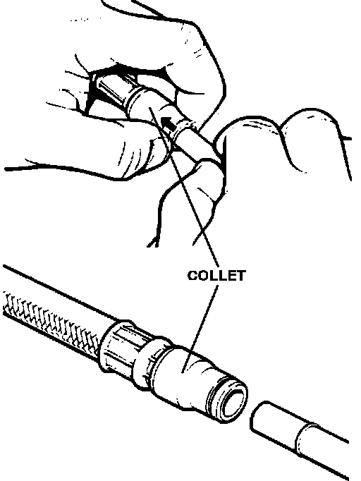 15. Push back collars on quickfit connectors and remove vapor pipe and over-pressure pipe from evaporative loss flange port.
