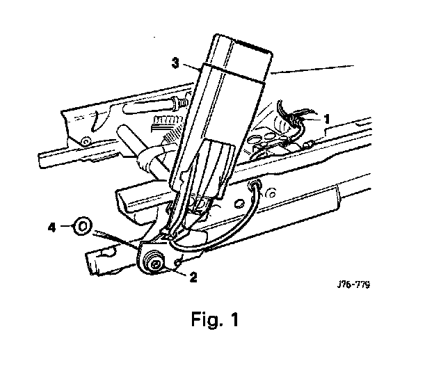 Disconnect the cable connector (1 Fig. 1) and remove the cable to the seat frame tie strap.