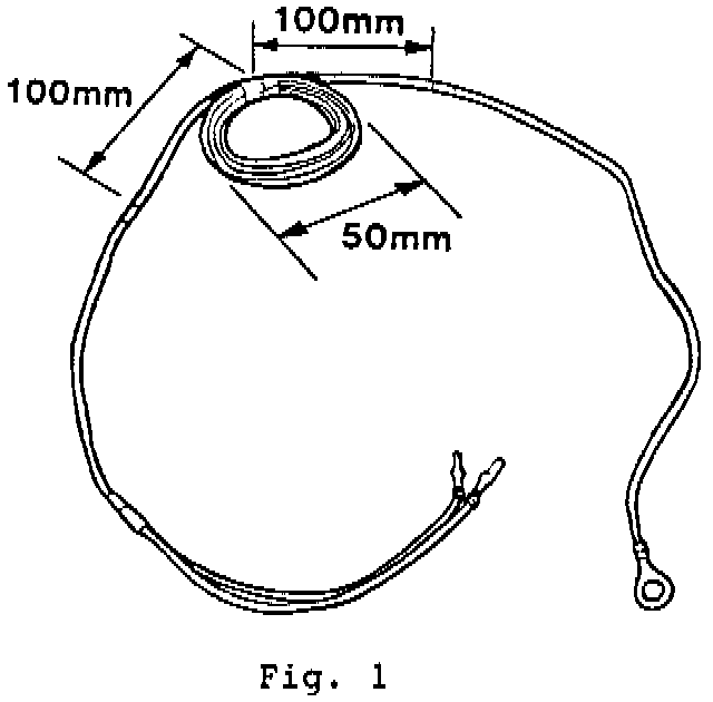 18. Form the new Headlamp Ground Lead (Part No. LSJ 3998CA) into a coil of approximately 5Omm diameter, with ends protruding according to the dimensions indicated in Fig. 1. Use adhesive tape to secure the wire in a coil, as shown.