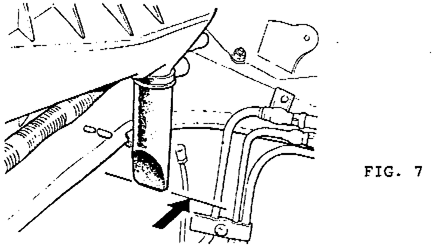 62. Replace the drain tube with an "Extended" length drain tube (Part No LMB 7OOOBA). Position the tip of the drain tube "in line" with the vehicle; the slit in one face of the rubber tube should face the right hand inner fender of the vehicle. See Fig. 7.
