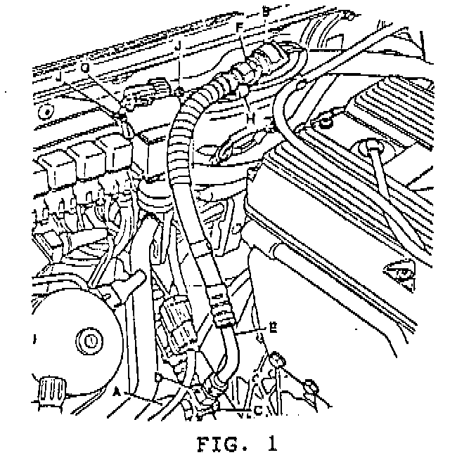 15. Position the extension hose / slow fan pressure switch against the corrugated harness tubing at the bulkhead. Secure the pressure switch to the tubing as shown. Use the tie strap provided (Part No. ADU 9028). See Item F, Fig.l.