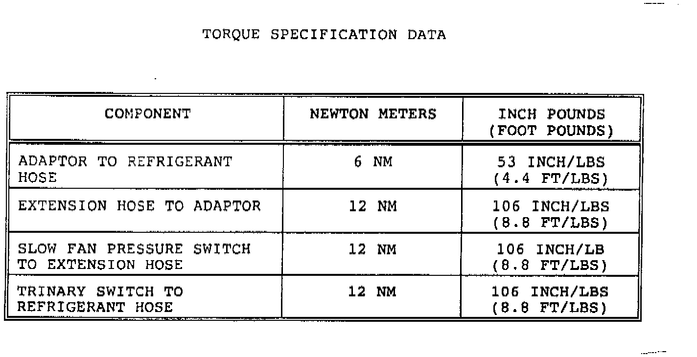 12. Install and tighten the extension hose (Part No. MMB 7374AA), to the adaptor. Items D & E, Fig. 1. DO NOT EXCEED THE RECOMMENDED TORQUE SPECIFICATION. Refer to the Torque Chart. FIG. 2