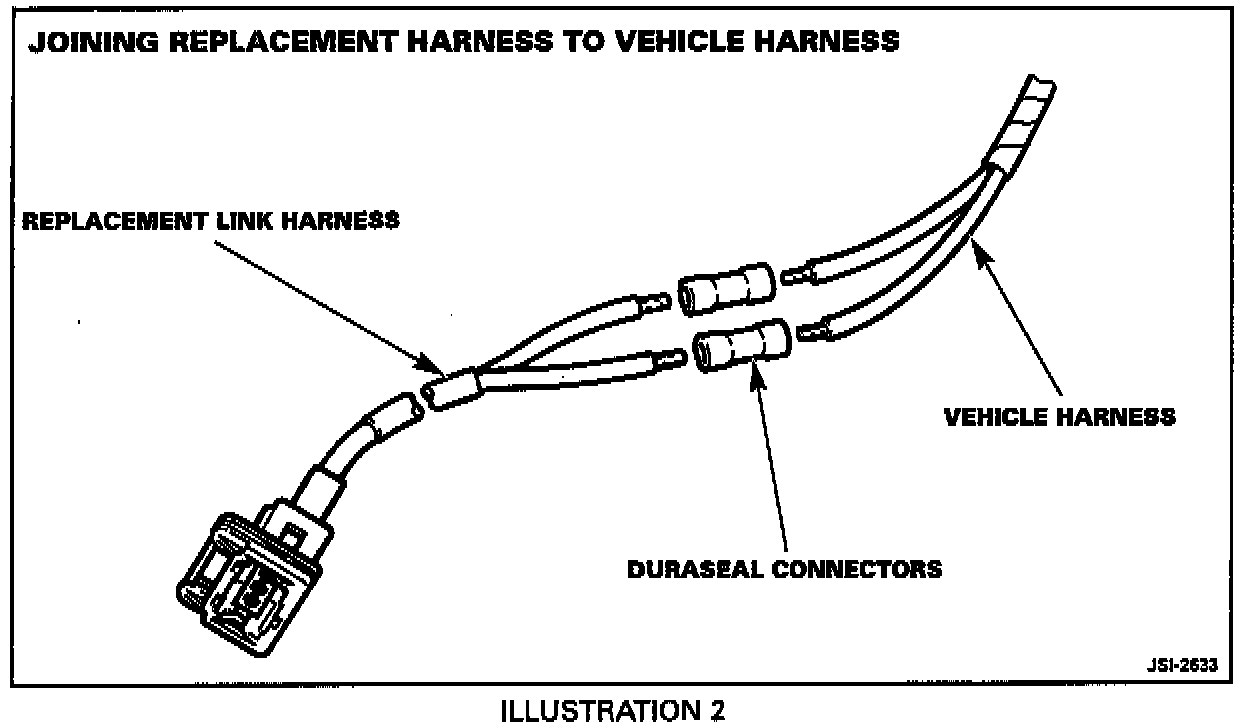 12. Crimp the connectors on the bare wire ends of the vehicle harness to connect the replacement link harness to the vehicle harness.