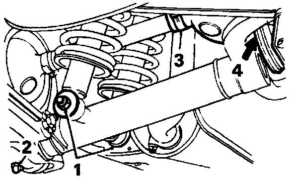 16. Remove the nuts and washers securing the rear dampers to the lower wishbone.