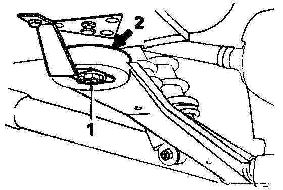 15. Lever the radius arm from the spigot anchor on the body. Position a jack or support blocks, under the hub carrier assembly.