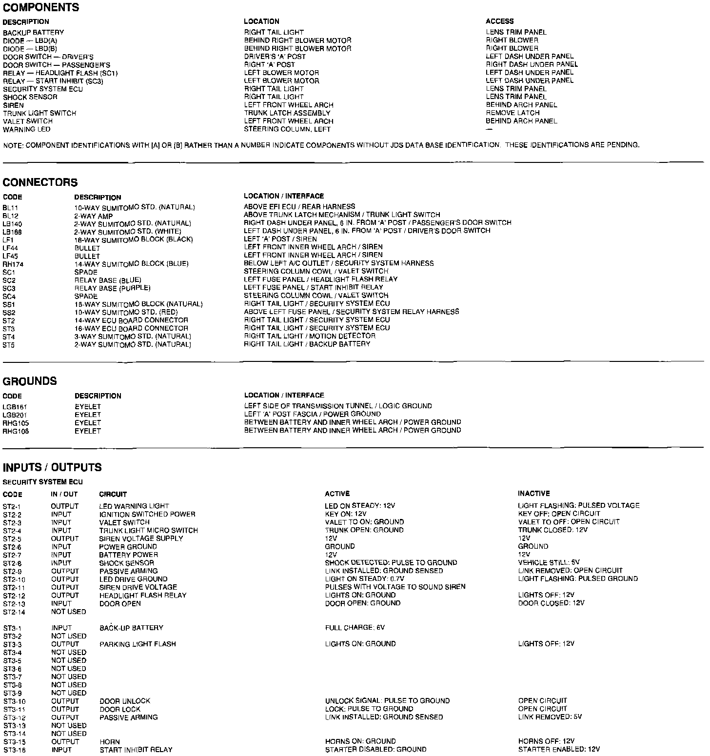 Components, Connectors, Grounds, Inputs/Outputs: