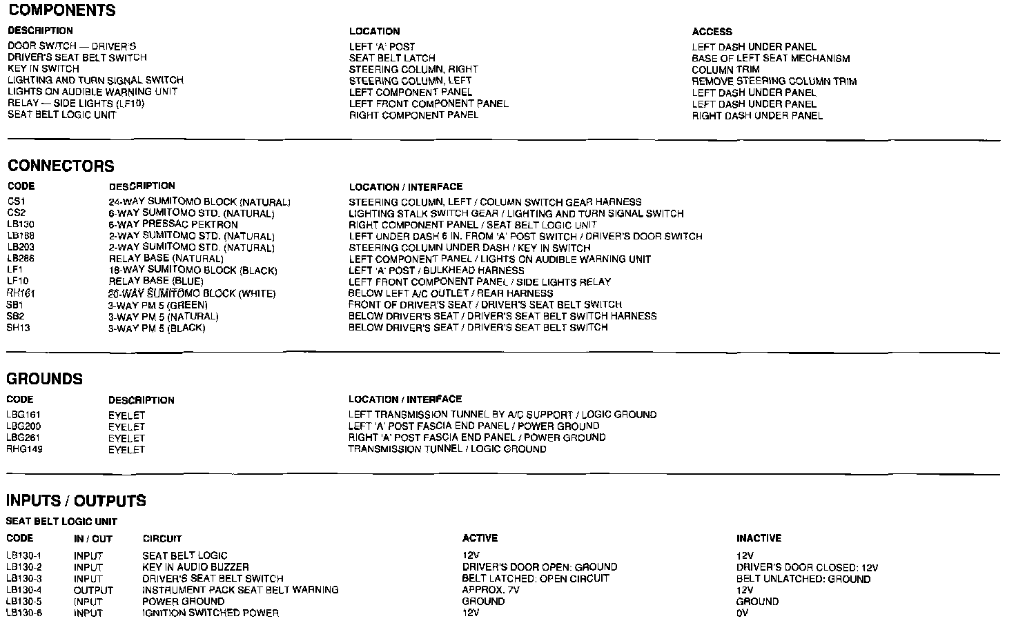 Components, Connectors, Grounds, Inputs/Outputs: