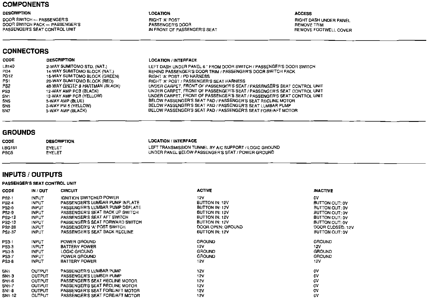 Components, Connectors, Grounds, Inputs/Outputs: