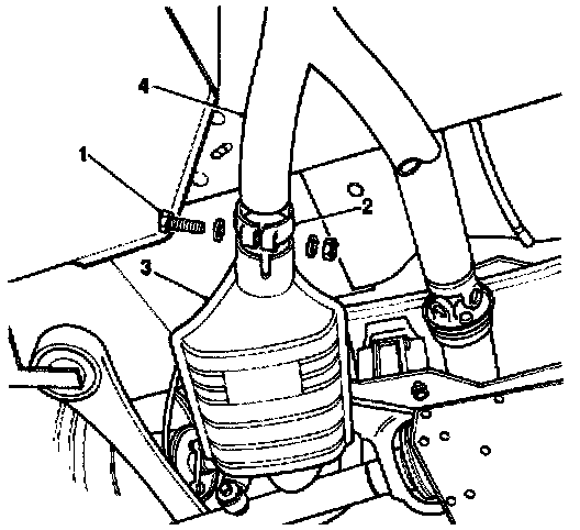 - Carefully separate the converter (3) from the intermediate pipe.