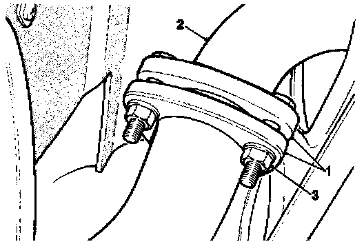 - Remove three of the nuts and leave the fourth to support the system (2).
