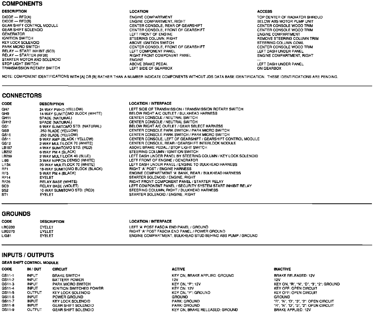 Components, Connectors, Grounds, Inputs/Outputs: