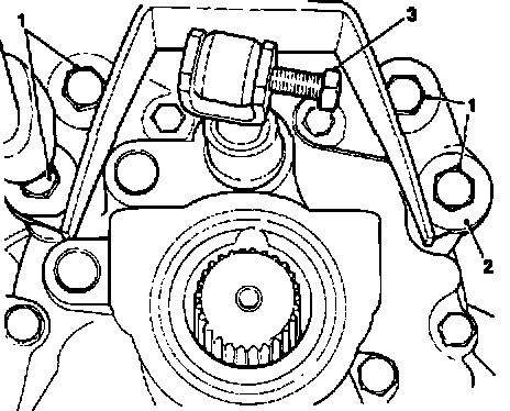 22. Reposition control assembly for access. Loosen and remove all but two transmission to engine adapter plate securing bolts (1) Fig. 4.