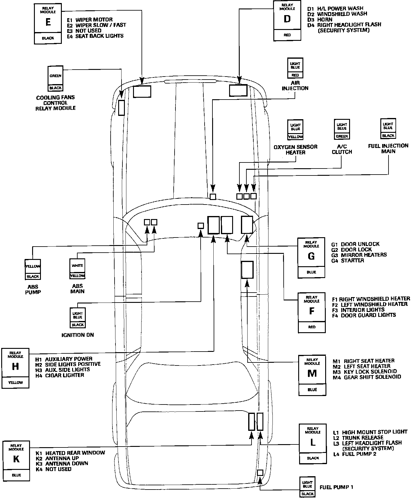 PURPOSEThe main relay supplies power to the oxygen sensor heaters relay, fuel injectors and air pump relay.