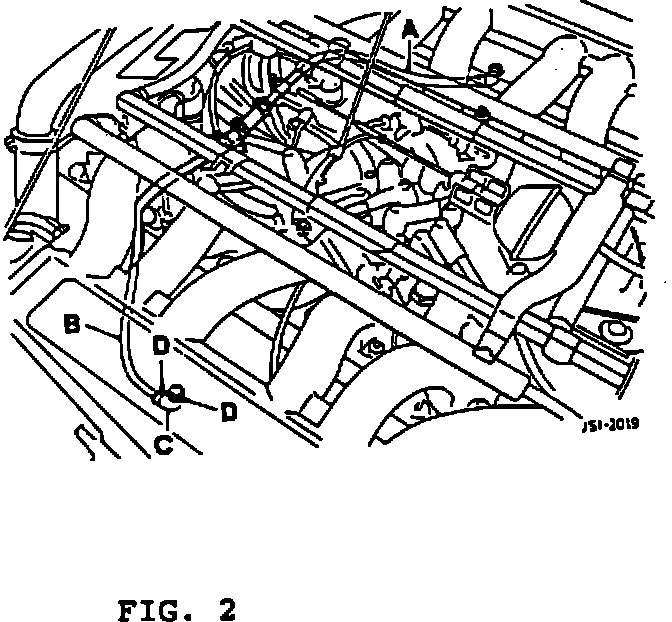 9. Assemble the purge hose (NHE 6068BA/4), Fig. 1 D, to the appropriate leg of the "T" piece (NAB 3953AA), Fig. 1 C, securing the hose with a clip (JHC 300120).