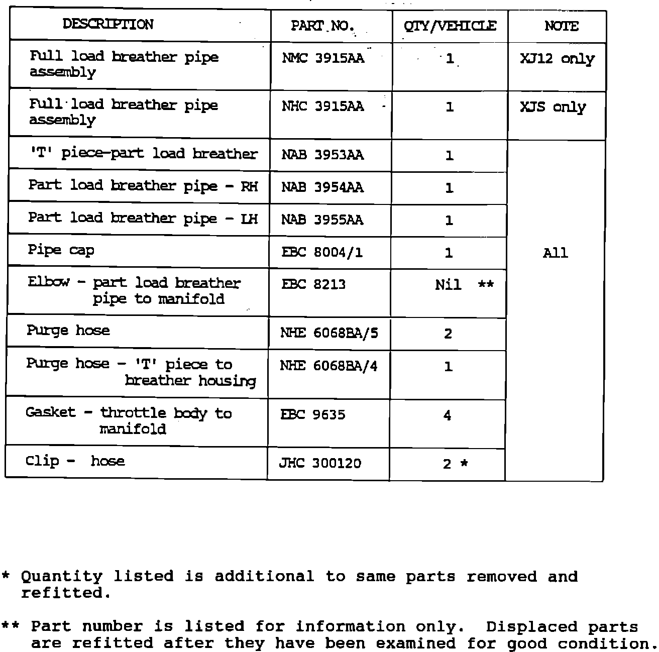 5. Install the revised full load breather pipe assembly (NMC 3915AA for XJ12, NHC 3915AA for 6.OL XJS) to the original position.