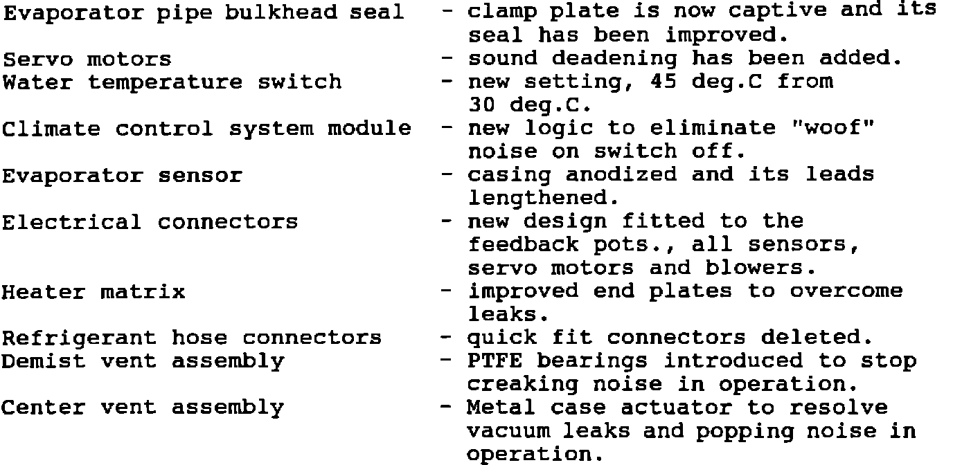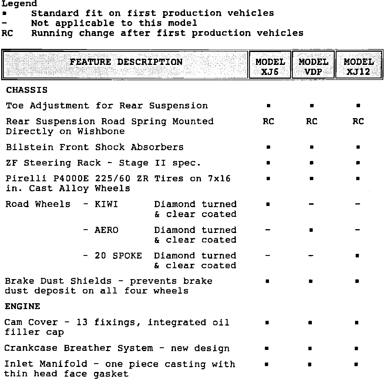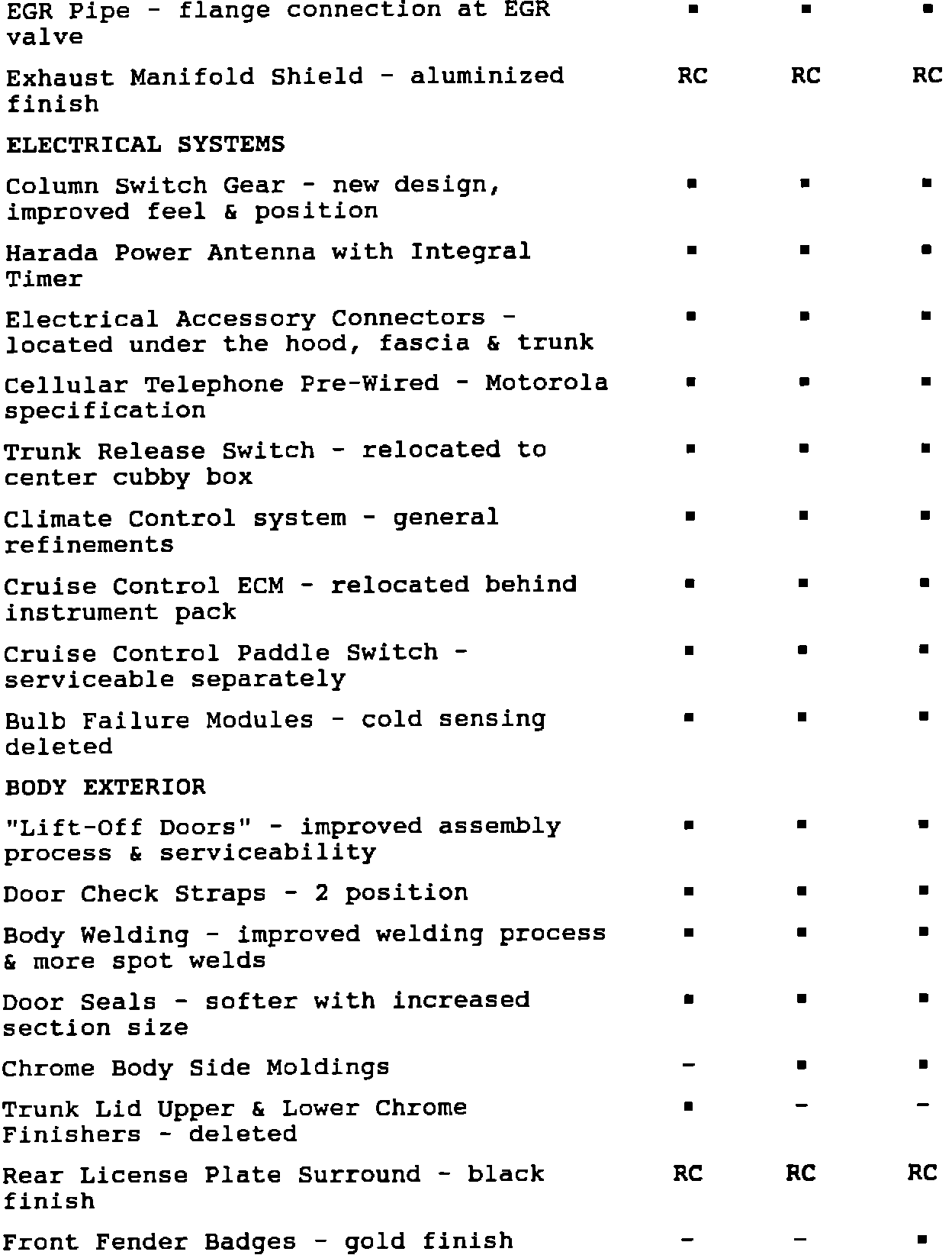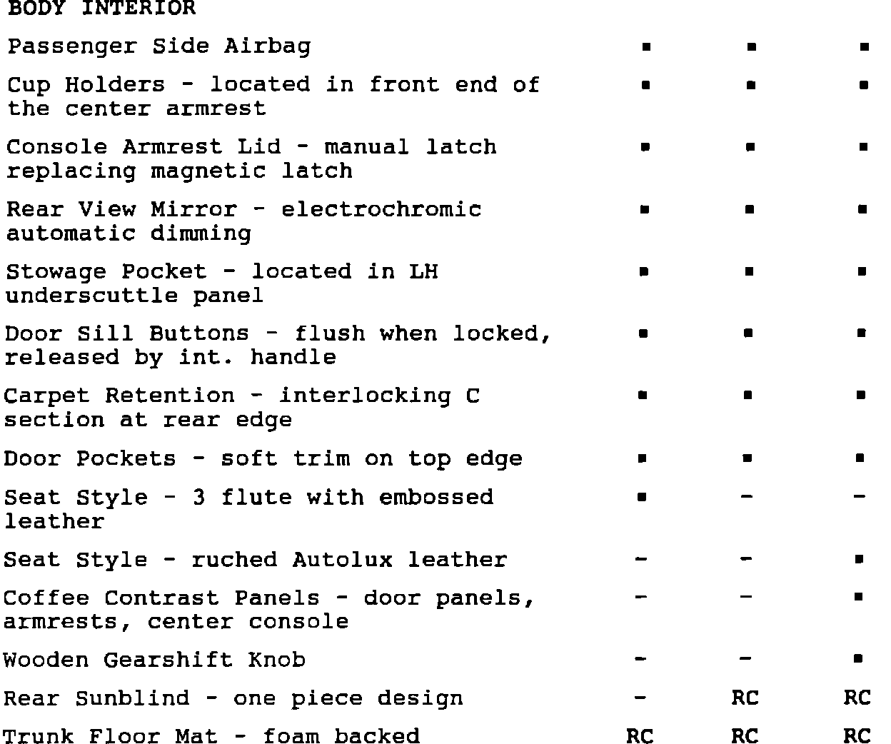 The list details the technical and feature changes which will be introduced on 1994 MY Sedans. NOT ALL changes will be incorporated in early production vehicles. The starting VIN for 1994 MY Sedans is 687219.