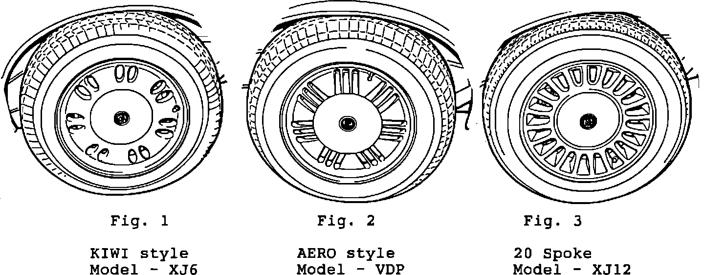 The 5 spoke wheels introduced on XJS & XJS V12 CANNOT be used on XJ12 Sedan as they are not rated for the XJ12 Sedan vehicle weight. They can however on the XJ6/VDP range. See Figures 1, 2 and 3.