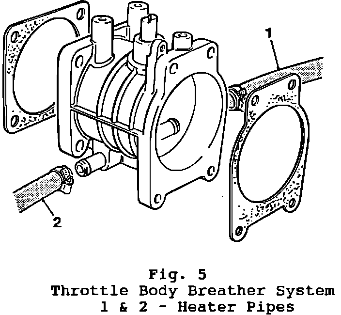 The full load breather is integral within the cam cover. The part load breather system is within the throttle body and is water heated (Fig. 5). The new breather system has improved venting capability to reduce oil consumption and contamination of recirculated exhaust gas (EGR).